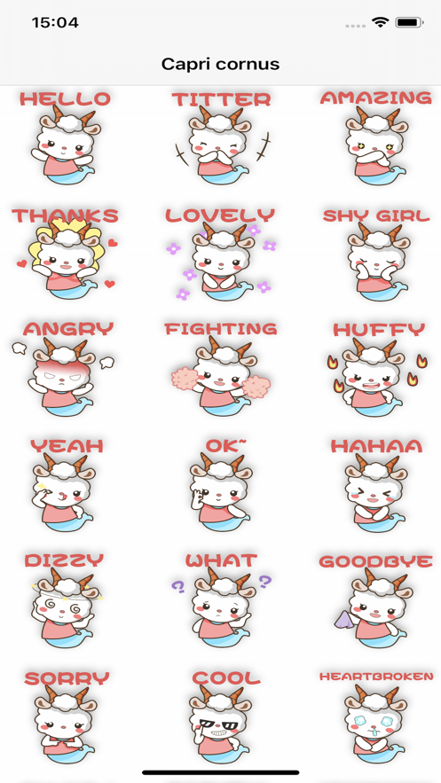 喜欢贴纸的朋友可以来看看这款Capri cornus卡通贴纸app哦,它是摩羯座贴纸,里面是半羊半鱼贴纸,摩羯座的朋友不要错过哦。软件拥有丰富的贴纸,可以充当表情包使用哦。用户可以保存所有的贴纸到相册里,在各个社交平台上使用,让对方感受到摩羯座的可爱。
