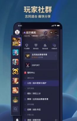 dsport电竞app是电竞人必备的游戏服务平台,可以为用户提供游戏开黑、语音聊天、资讯攻略、赛事动态等,在这里,你可以和各路玩家一起组队开黑,一路拿到胜利的旗帜。海量的游戏攻略和通关方法等你来学习和领悟,还有玩家社群可以加入,和队友们一起看比赛,吐槽战队。