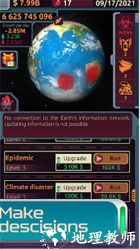 2、游戏中会有很多破坏世界的事件,包括感染、气候灾害、人为灾害、流星坠落、僵尸、机器起义等等。