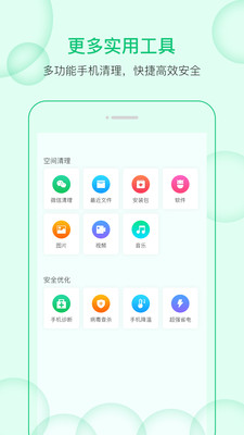 2、让您的手机安全无忧,更高效、快速、准确地清理手机垃圾,提升手机运行速度。