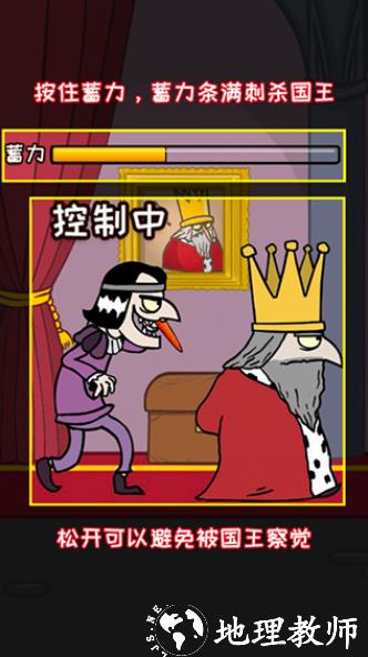 1. 刺杀技巧:玩家需要掌握长摁屏幕控制蓄力的技巧,找准时机刺杀国王。
