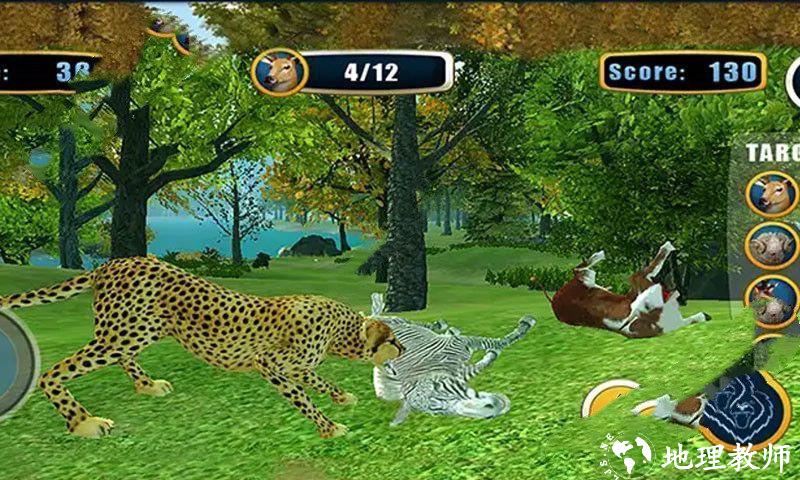 3. 玩家需要利用猎豹的速度和敏捷性捕猎野生动物,解锁武器,与敌人战斗。
