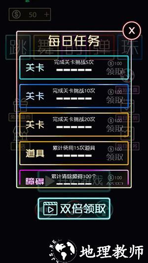 6、点击应用主界面的 “每日任务” 选项,完成关卡任务后,点击 “领取” 按钮即可获取对应奖励;