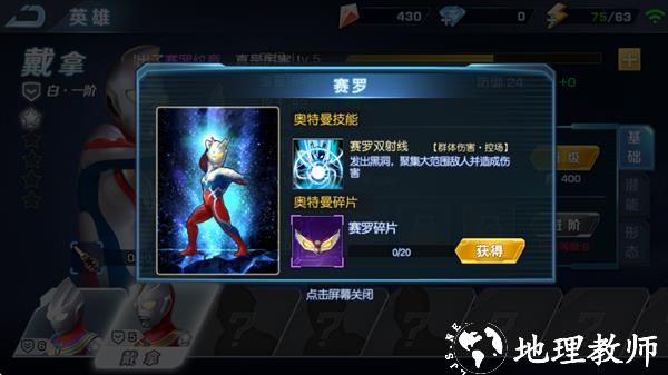 2、亲手操控迪迦、银河等人气英雄释放宇宙光线,收集宇宙战机,守护人类家园!