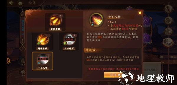 升级后,如果目标被越王勾践剑大招斩杀,在本次战斗中有50%几率该目标无法被复活,助战时无法生效。
