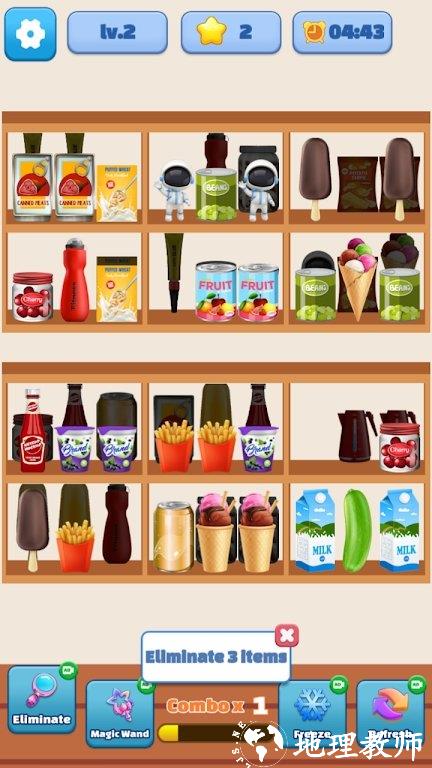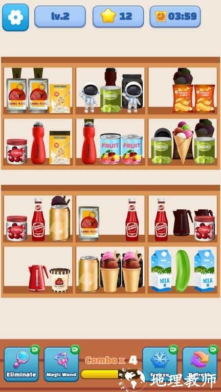 2、游戏提供了各式各样的货物,包括食品、饮料、日用品等等,玩家需要将它们正确地放置到对应的货架上。