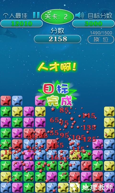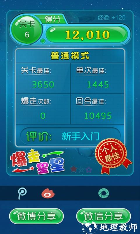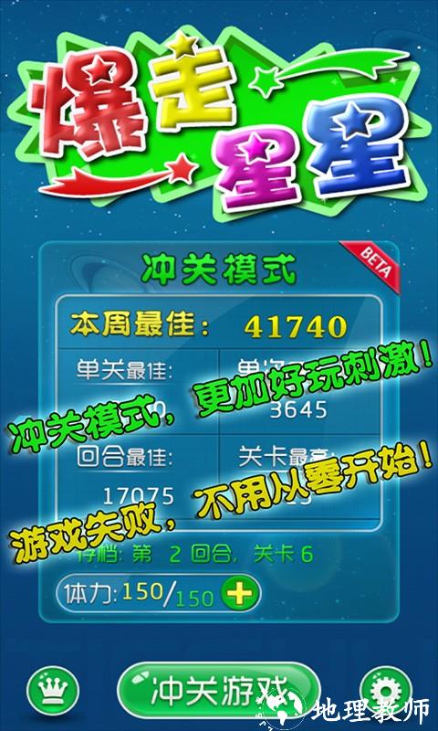 爆走星星,消灭星星爆走版!界面清晰效果好!没有广告来打扰!单调的消除是否已经玩腻?回合任务让你有更多的追求和挑战,搭配五种不同的技能,从容应对各种局面,获得更多的趣味。剩余星星越少已经不能满足我们了,我们要全部消灭,我们要爆走!破纪录了却无法直接分享?游戏结果,数据丰富,一键分享!微信好友分数分享,轻松查看双方分数对比。