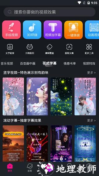 2、在主界面可选择手绘视频、3D 环绕、视频加字幕、一键换装等多种功能,为视频增添创意。