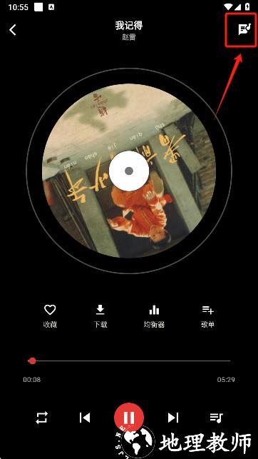 5、点击右上角图标,可查看当前播放音乐的歌词。
