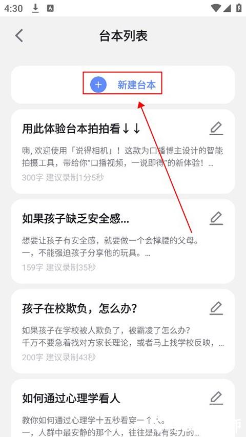2、在这里可以看到模板台本,可以直接使用模板或点击上方 "新建台本"。