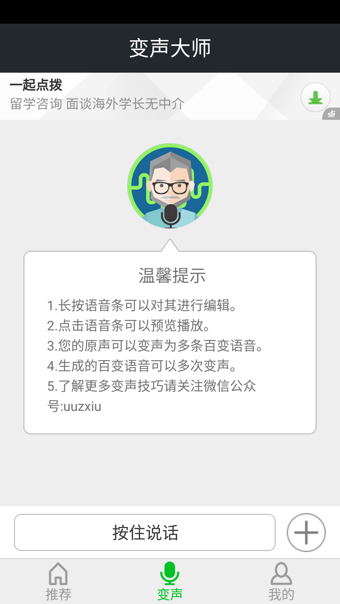 变声大师是一款功能强大且易于使用的安卓应用程序,它能让用户的声音瞬间变得与众不同。这款软件采用全新的变声算法,提供丰富的声音效果和过滤器,使用户的声音可以转换成多种有趣和创意的效果。无论是用于娱乐、社交媒体还是录音,变声大师都能帮助用户创造出独一无二的声音体验。