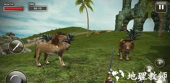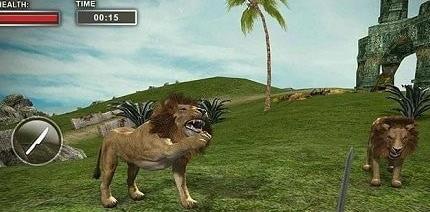 野生动物在荒岛上自由漫游,狩猎猎物,保护自己免受丛林狮子和熊和其他危险的挑战。