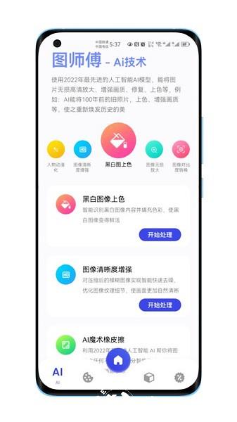 2、ai相关:黑白图像上色、图像清晰度增强、Ai橡皮擦、Ai图像去水印、图像无损放大等;