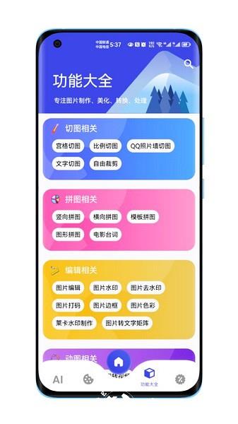 图师傅app是一款手机图片处理软件,更像是一个图像工具箱,在软件中为用户提供了非常多的图片后期功能,包括切图、拼图、裁剪、转换等等功能,你可以在软件中找到自己需要的功能直接使用,让你的图片可以轻松进行处理,做出符合自己需求的图片。