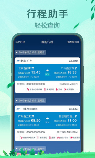 1、机票预订:掌上预订国内/国际单程/往返机票,支持在线退改签升舱服务