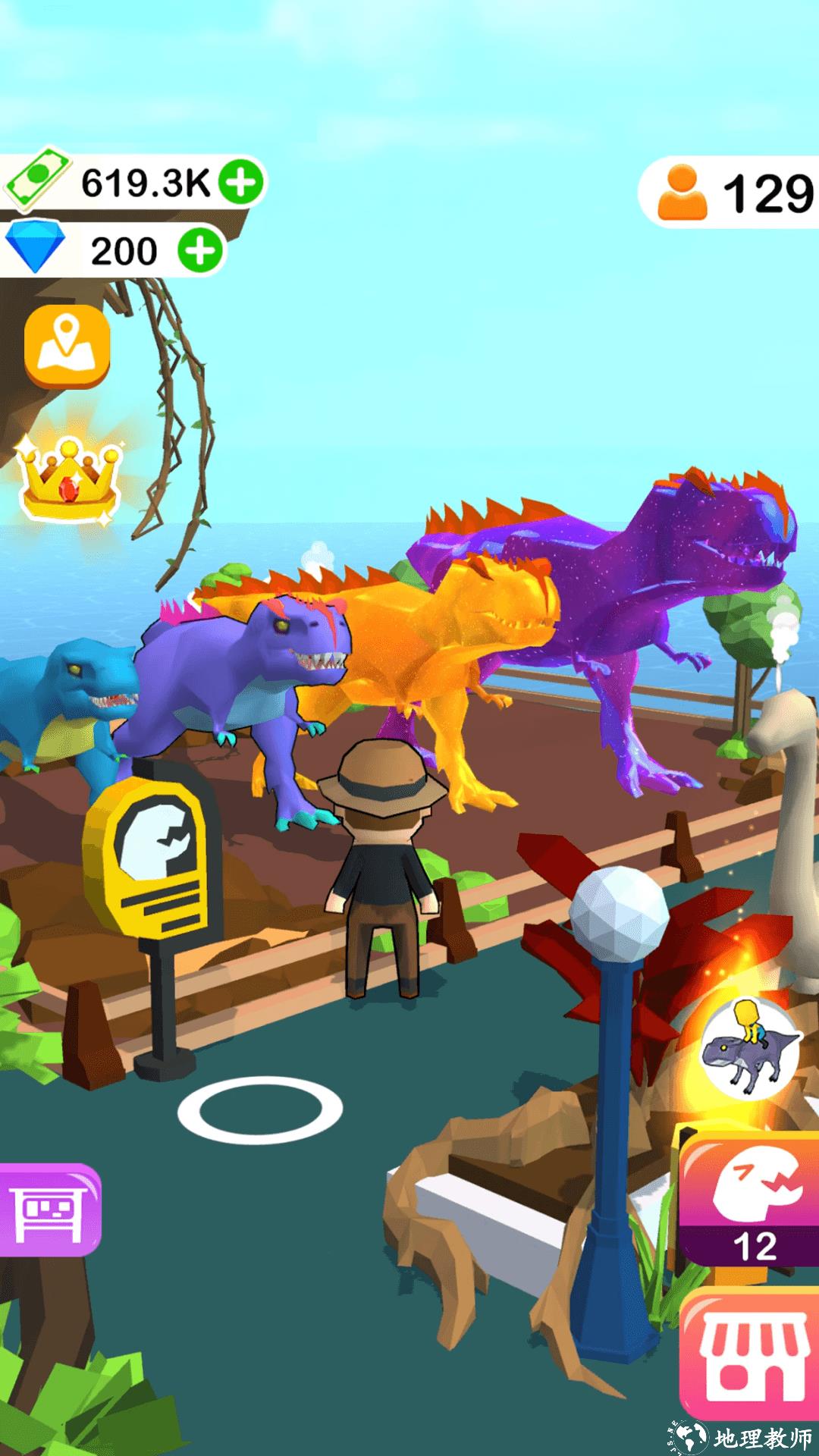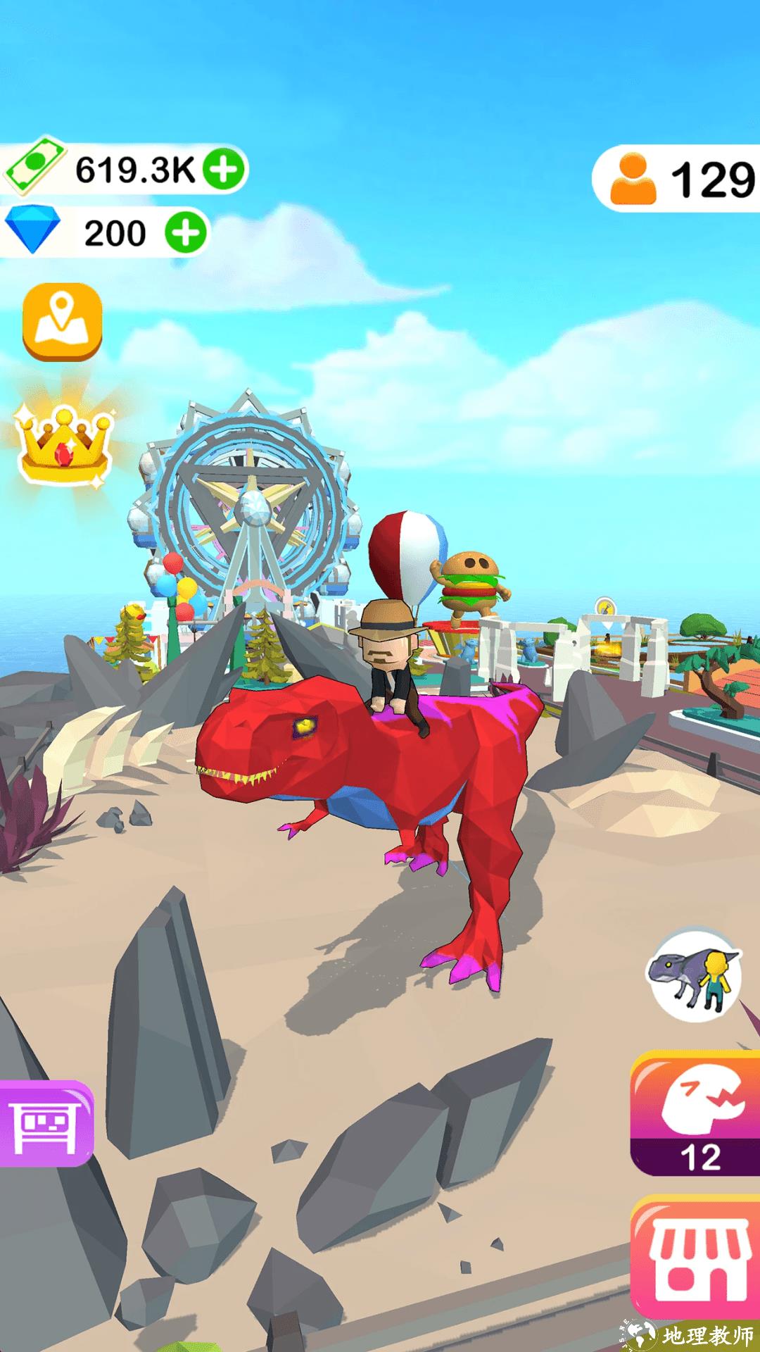 这款经营小游戏的游戏画风特别卡通,角色和恐龙的建模都比较简单,但还是都能分辨出来每只恐龙的种类,不仅如此,除了参观恐龙以外,这家恐龙乐园还可以提供骑恐龙的项目,非常刺激。