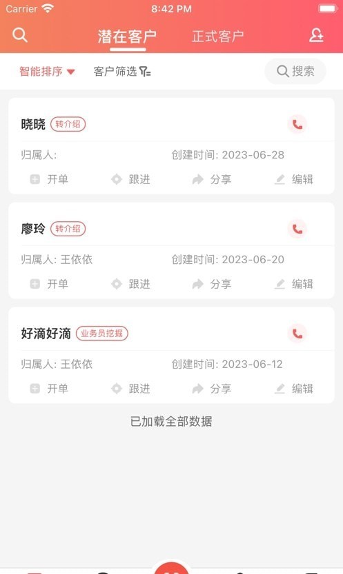 1、所有客户资源同步,即使销售人员离开,也不用担心客户流失。