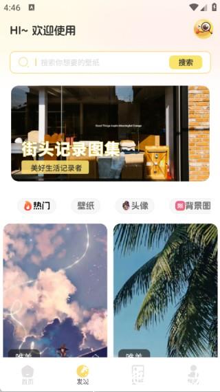 2、进入发现页面,这里包含热门、壁纸、头像、背景图等板块,还支持搜索,方便查找所需壁纸。