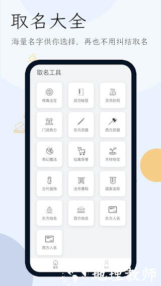 1、提供动态命名服务,一键生成风格统一的人物姓名、势力称号、功法招式名称及相关简介。