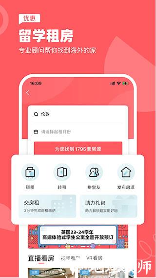 1、 提供海外租房服务,整合公寓、合租、寄宿家庭等多种房源,支持按地理位置、预算筛选。