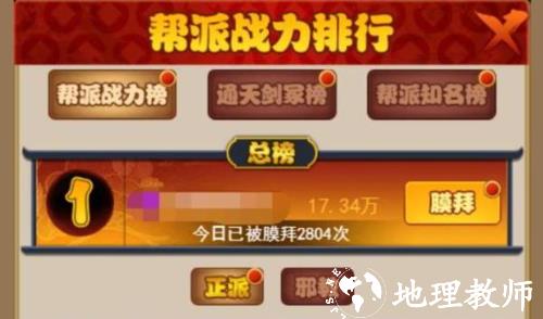 这个也是全部新手玩家进入游戏之后,最先可以获得金条的途径。进入游戏之后会强制要求玩家先走一遍江湖历练(主要也是为了能让玩家先熟悉一下基础玩法),可以先不用听指引去点游历,直接点主界面右上角的帮派图标,点进去弹出来的新页面有个排行榜的按钮,再点一下,出现排行榜。