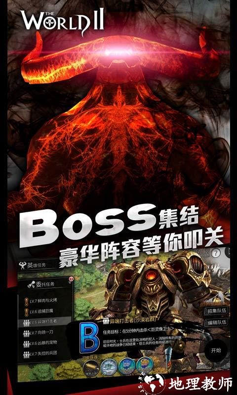 世界2是一款由谷得游戏精心打造的跨平台狩猎风3D动作游戏。这款游戏打破了传统RPG游戏的繁琐模式,让玩家从一开始就能直接与超巨型boss进行激烈对战。游戏提供了五大职业和数十位独具个性的英雄供玩家选择,每个职业都有其独特的技能和特点,为玩家带来了全新的游戏体验。游戏场景设计精美,逼真的场景破坏效果和天气昼夜变化增加了游戏的真实感和紧张感。此外,游戏还配备了开放式交易系统和多人实时对战模式,让玩家能够与其他玩家进行交流和互动,享受更多的互动乐趣。