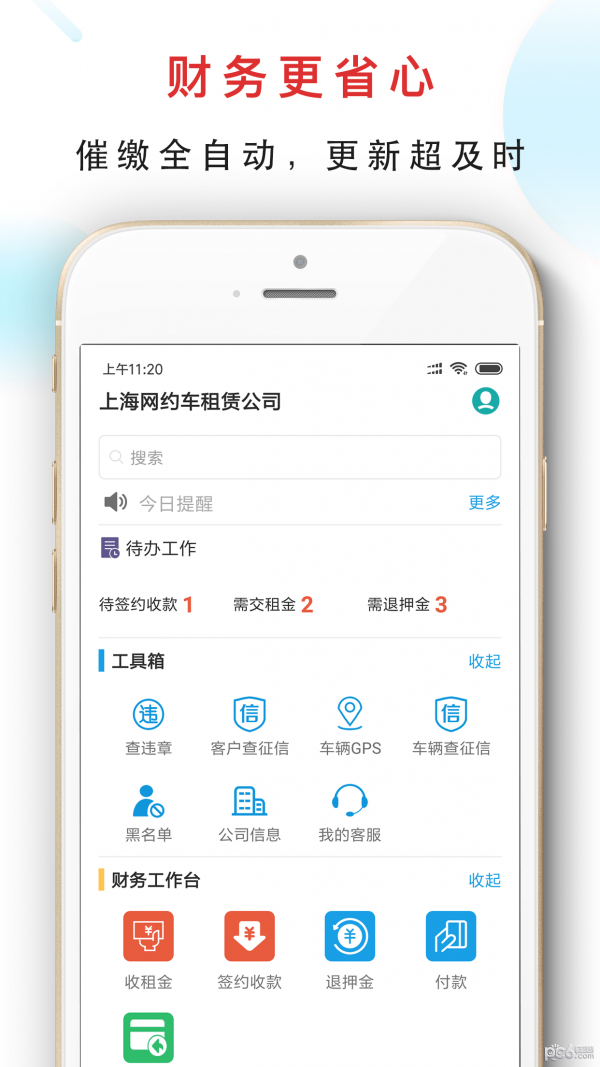 3、用户客户管理以及财务管理全功能,方便你更好的管车管人。