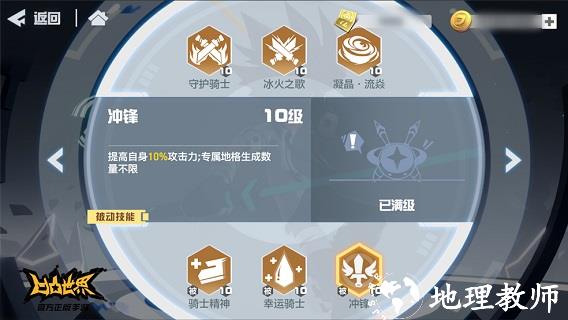 提高自身10%攻击力;专属地格生成数量不限。