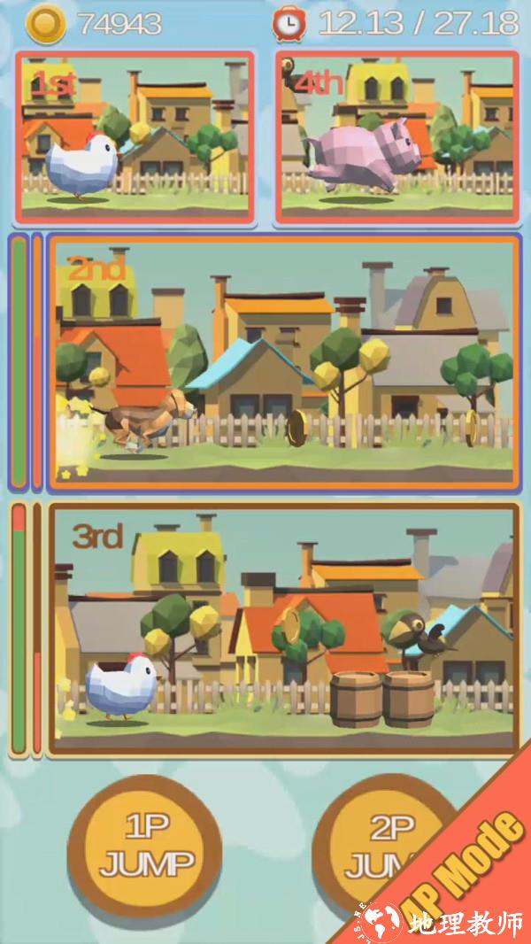 2. 游戏中的小动物包括小猪、小鸡等多种角色,每种动物都有其独特的技能和特点,玩家需要根据不同的场景和任务选择合适的动物进行比赛。