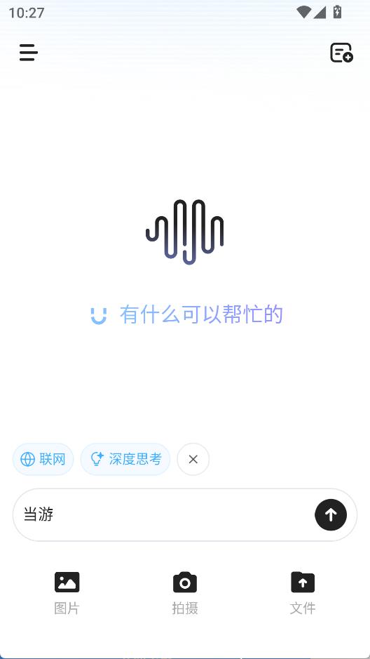 1、在输入框内输入文字进行对话,提供联网与深度思考选项,点击右上角按钮新建对话