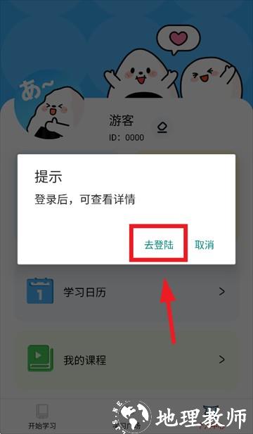 3、弹出提示界面后,选择【去登陆】选项进入登录页面。