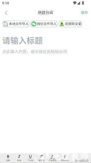 3、内容导入:支持多种形式的文本导入,方便快速录入要展示的内容,节省手动输入时间,高效开启提词流程。