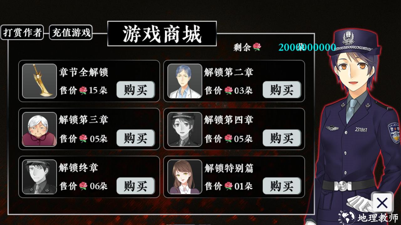 7、可进入内置商城,在商城中挑选并购买所需道具,为后续案件调查提供助力。