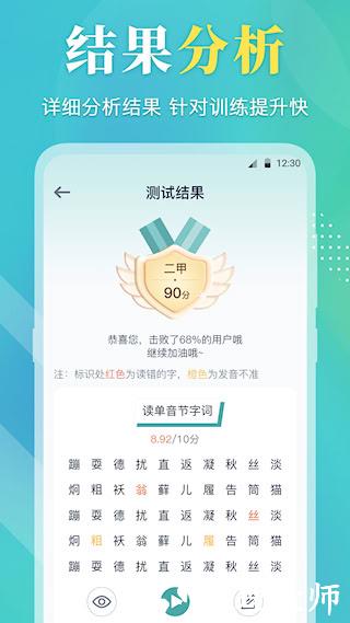 2、内置智能语音评测引擎,对使用者的发音进行多维度分析。精准识别声母、韵母、声调的错误,并提供可视化修正建议。