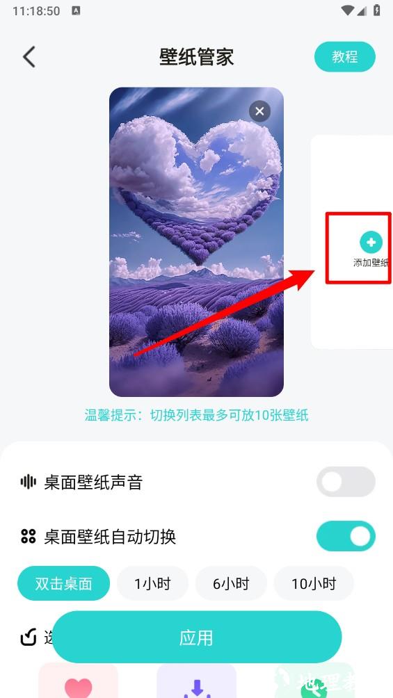 5、进入自动切换设置后,点击添加需要切换的壁纸,需注意切换列表最多可添加 10 张壁纸。