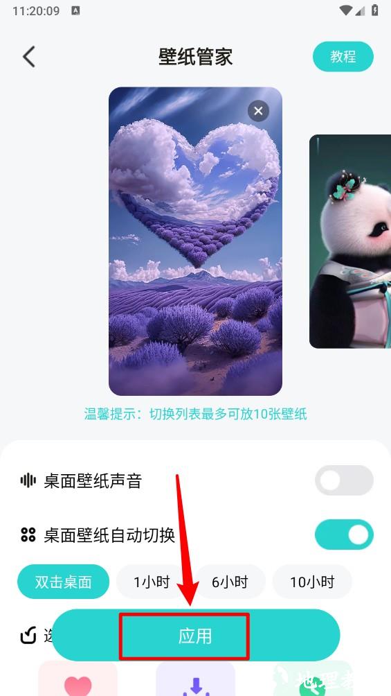 7、完成壁纸添加后,选择合适的切换时间,点击 “应用” 即可开启自动换壁纸功能。