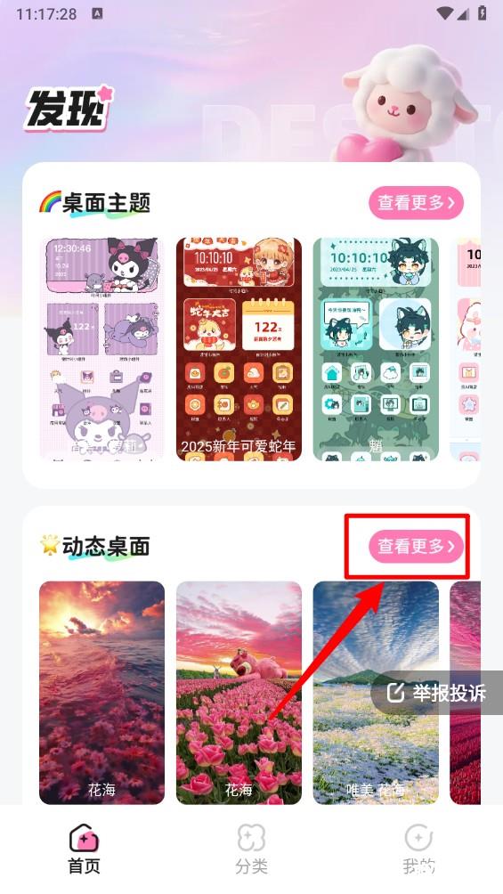 2、在首页动态桌面右侧点击 “查看更多”,进入壁纸选择页面。