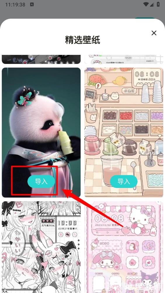 6、滑动浏览壁纸库,选择喜欢的壁纸并点击 “导入”。