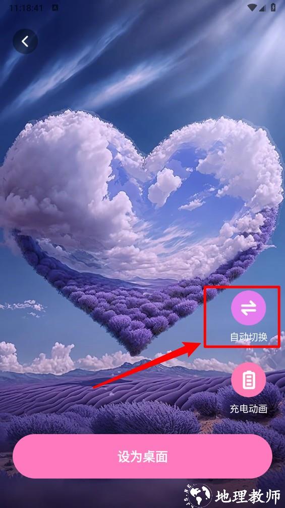 4、打开选中的壁纸页面,点击 “自动切换” 选项。