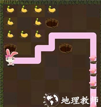 2、第二步:小兔子解决掉胡萝卜,可参考上图所示的走路方法规划路线。