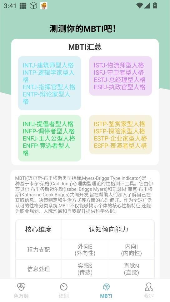 1、科学性格测试:结合专业心理学模型与先进算法,提供科学准确的 MBTI 性格测试及深入特征分析,结果更具参考性。