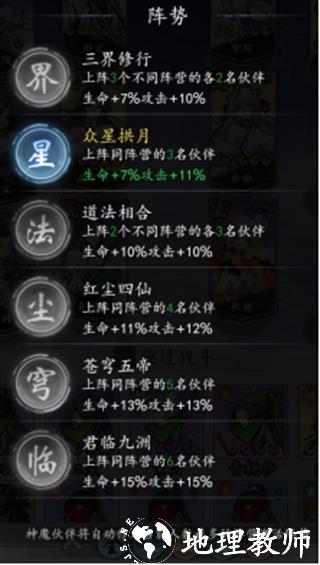 2、唤仙令策略:唤仙令应专注于提升特定阵营势力伙伴的品质和星级,升级伙伴到高星级可激活伙伴天赋技能,以形成强大的阵容战力,建议优先培养一个强力伙伴至高星。