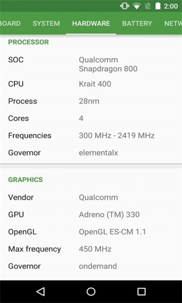1. 全面的硬件信息显示:devcheck能够显示设备型号、cpU状态、电池状态、屏幕、摄像头、内存、传感器等详尽的硬件信息,让用户对手机硬件有一个全面的了解。