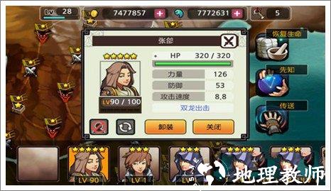 2、推荐星级:★★★☆☆,所持技能可实现全屏范围攻击,该技能实用性极强,不过存在与张郃相同问题,普通攻击表现欠佳。