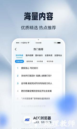 ACC浏览器是一款以轻量、快速为核心特点的移动端网页浏览工具。体积小巧,占用系统资源极少,能提供流畅的网页加载与滚动体验。具备强大的广告拦截与隐私保护能力。内置的过滤引擎可有效屏蔽网页上的弹窗广告、视频广告等干扰元素,营造洁净的阅读环境。支持无痕浏览模式,不记录历史、缓存和Cookie,防止个人数据泄露。