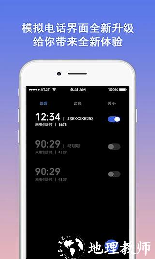 1、核心功能为生成高度仿真的虚拟来电,界面与真实通话完全一致,包含自定义的来电姓名、号码与铃声。持有者可预先设定呼叫时间,到点即可触发。