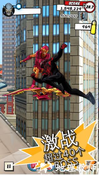 2. 剧情模式:游戏设有丰富的剧情任务,玩家将跟随蜘蛛侠的脚步,穿梭于不同的时空,对抗邪恶六人组及其新成员。每个章节都有独特的故事情节和boss战,让玩家在跑酷的同时也能享受剧情的跌宕起伏。