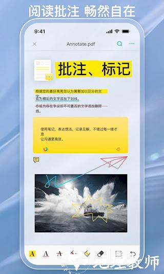 3、 集成了丰富的批注与标记工具,包括高亮文本、添加下划线、删除线,以及使用铅笔、马克笔进行自由绘制和添加注释笔记。这些功能便于多人协作审阅,清晰表达修改意见和重点提示。