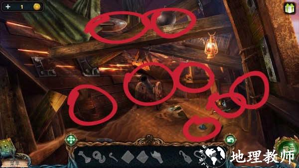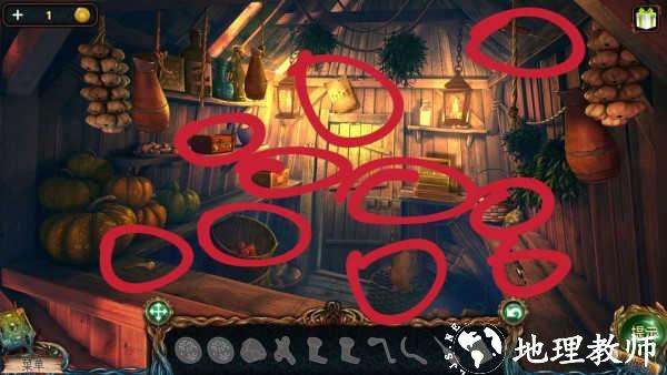 7. 室内草堆发现农用镰刀,书架取得石雕,柜面获得烛台,抽屉找到油壶,座椅放置第三尊石雕