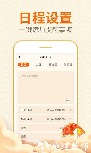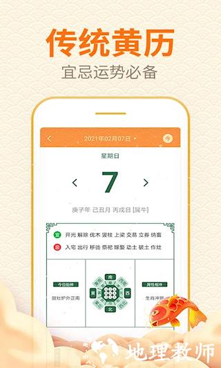1、提供专业黄历查询服务,包含每日宜忌、冲煞方位、吉神凶煞等完整信息。支持重要事项的吉日筛选功能,如婚嫁、搬家等场景的日期推荐。